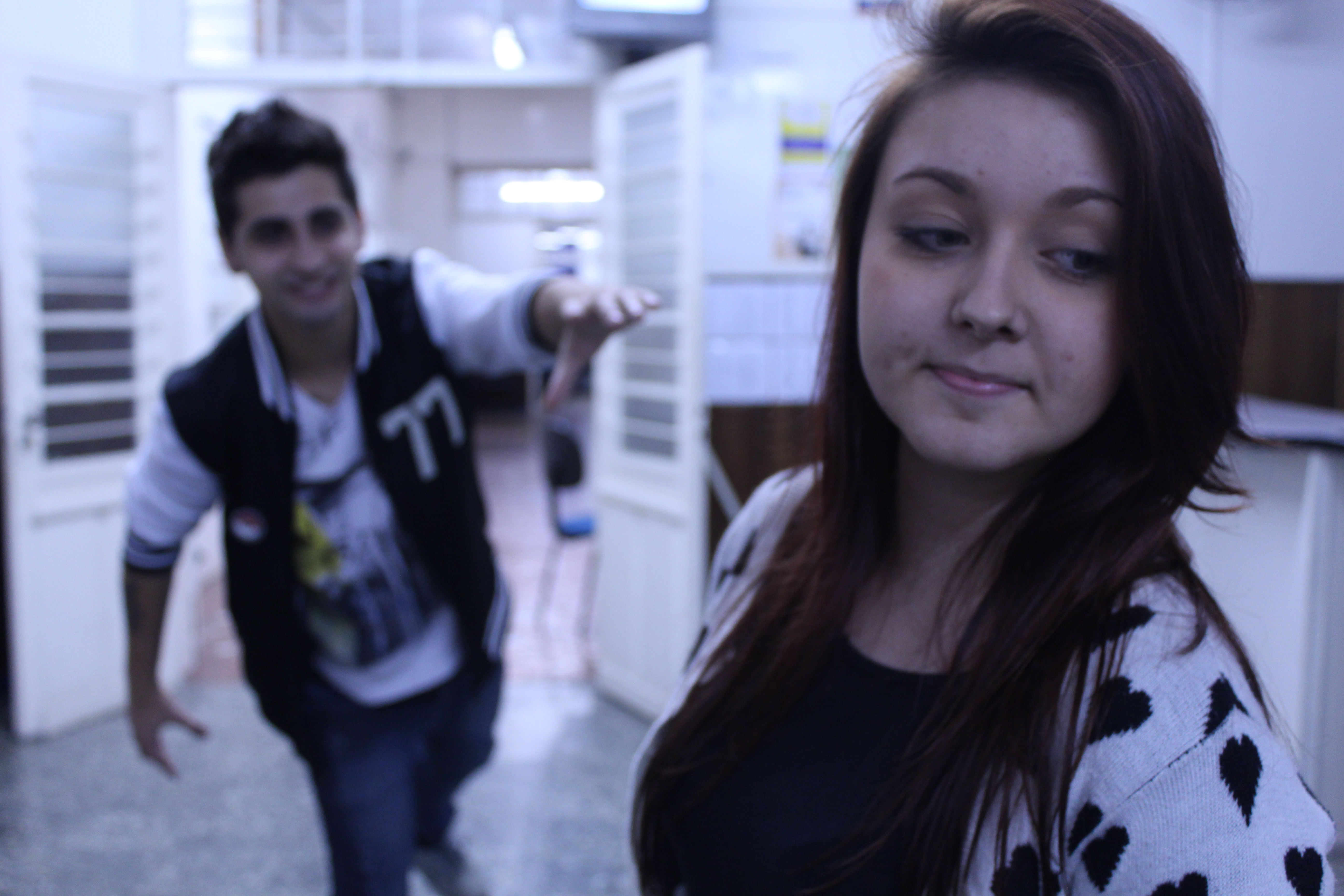 Hoje, dia 8 de Janeiro, é o dia do fotógrafo, e eu não posso deixar passar em branco. Curso publicidade atualmente e tive a honra de ter feito a cadeira de foto com professores maravilhosos, como a Graziela Hansen e o Rafael Cappelatti. Os dois são ótimos profissionais e ensinam muito bem, respeitando sempre a dificuldade de cada aluno. Nesse meio tempo, me apaixonei pela Canon T4i, que foi utilizada ao longo do semestre. Já estou com abstinência de fotografar com essa câmera e não vejo a hora de começar a cadeira de foto publicitária, na qual eu me inscrevi para começar em março. A foto abaixo é de meus dois colegas, Rafaela e John, que gentilmente posaram pra eu capturar a foto 🙂 Ficou meio azulado – faltou ajustar o balanço de branco – mas tá valendo ❤