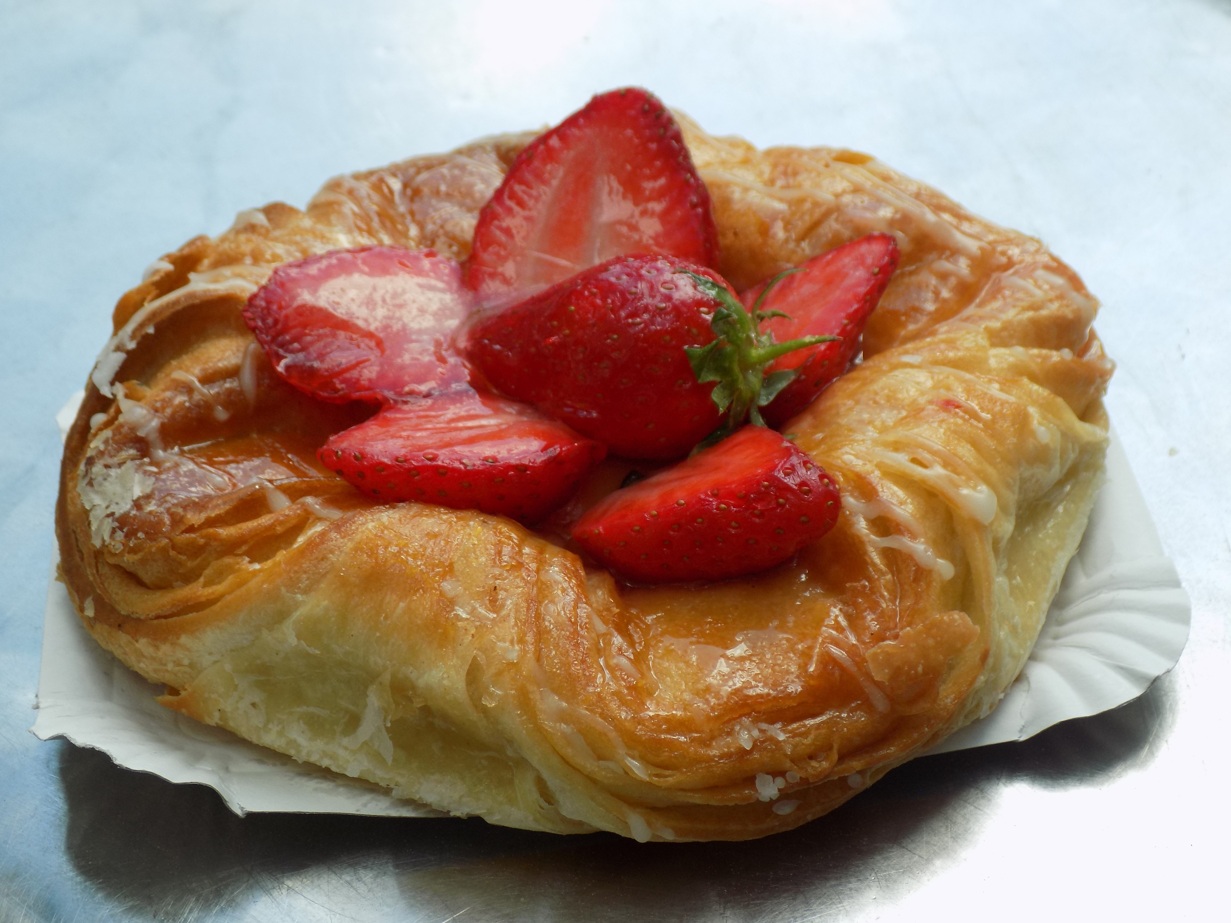 Justamente naquele final de semana havia uma greve no sistema ferroviário aqui na Alemanha e por isso demoramos horas até chegarmos no nosso Ziel (destino). Para fugir do stress, optamos por parar em Ulm. Deixamos nossas mochilas na estação, naqueles tais armários com chave e saindo de lá, acabamos parando em uma padaria lá perto. Quando olhamos o que estava exposto, o estômago bateu mais forte: foi fome/amor a primeira vista.