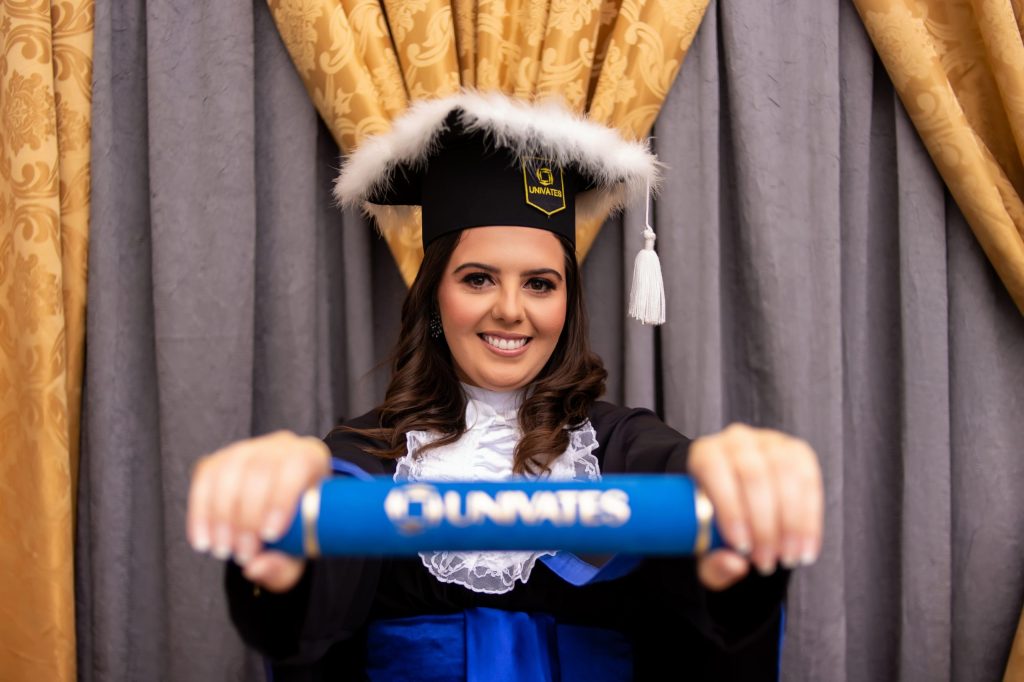 Pra quem cresceu tendo escassez em vários aspectos, chegar nesse momento da vida dá um quentinho no coração. A Bruna menina que ia nas Feiras de Cursos da Univates nunca pensava em se formar naquela instituição. Era sempre um daqueles sonhos impossíveis, pois a conversa em casa era sempre de que ela nunca teria dinheiro para pagar uma graduação lá. Os tempos mudam, a gente cresce, batalha e bom saber que os dias de glória também chegam.