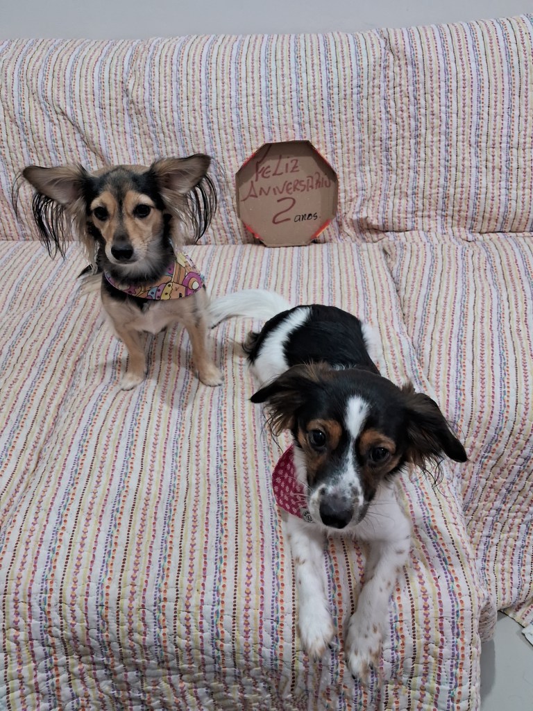 2 aninhos de uma Lourdes Maria que ama petiscos, brincar de bolinha e latir para os pedreiros da obra ao lado de casa.